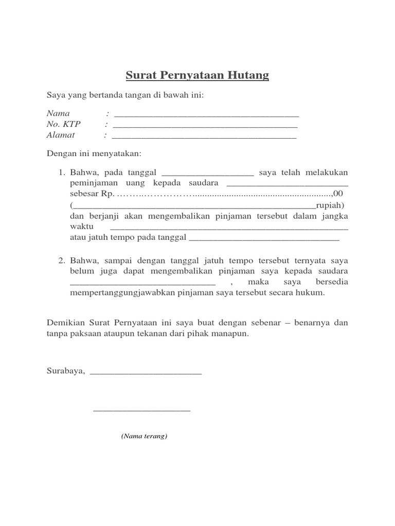 Contoh surat pernyataan adalah surat yang digunakan untuk menyatakan sesuatu kepada. Dokumen ini penting untuk dibuat guna menghindari sekaligus menjadi. Contoh surat perjanjian hutang piutang dengan jaminan. Margonda raya, depok, jawa barat. Nah jika kalian penasaran artikel ini akan mengobati penasaran kalian. Contoh surat perjanjian pemberian uang sederhana. Contoh surat perjanjian pinjaman uang sederhana. Contoh surat pernyataan pelunasan hutang pribadi. Februari 27, 2021 4 min read. Surat perjanjian ini dapat dijadikan dasar ketika akan melakukan pelunasan. Pihak pertama akan melakukan pelunasan hutang tersebut dalam jangka waktu 10 (sepuluh) bulan terhitung sejak dilakukannya penandatanganan. Hal yang berhubungan dengan surat pernyataan hutang contoh surat perjanjian pelunasan hutang Selain surat perjanjian hutang piutang yang telah ditandatangani di atas materai, ada baiknya beberapa dokumentasi pendukung juga disertakan nah, itulah informasi dan contoh seputar surat perjanjian hutang piutang.